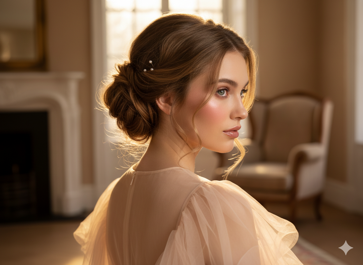 When it comes to hairstyles that perfectly balance elegance and ease, the Messy Curly Bun with a Gold Hair Pin…