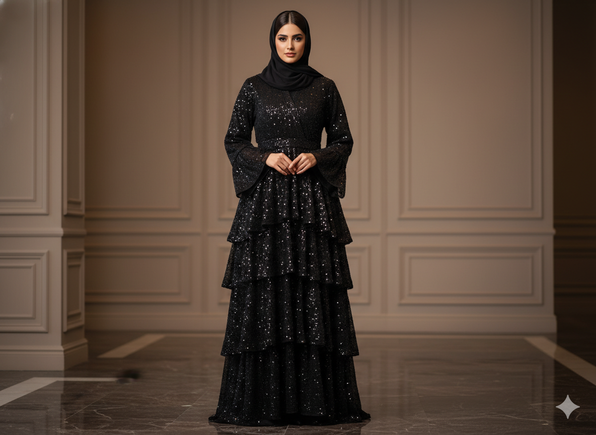 10 Black Sequin Abaya with Hijab Elegant Sparkly Modest Party Wear | 2026