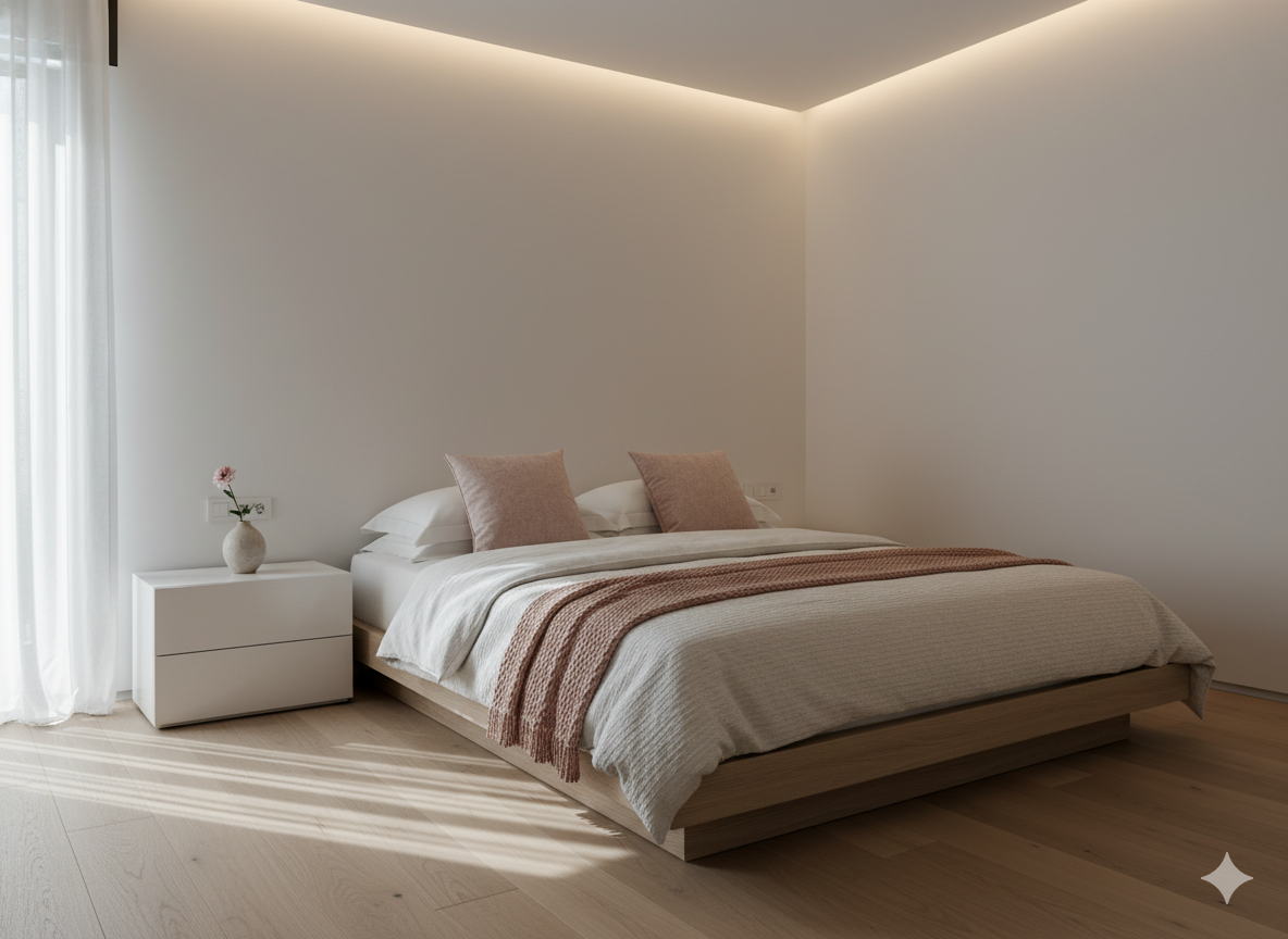 This combination works perfectly for small and large bedrooms alike, giving the space a soft and romantic feel without being overwhelming.