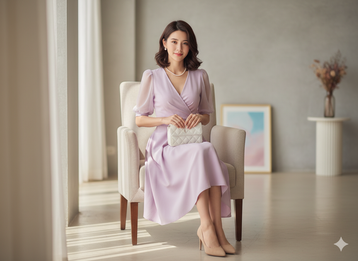 Outfit Idea: A soft pink dress paired with nude heels and a small beige handbag. Add pearl stud earrings and a slim bracelet to complete a graceful look.