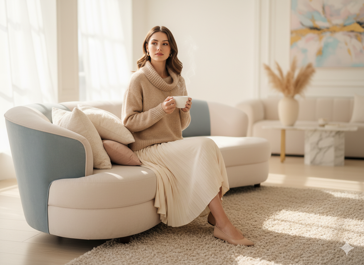 Styling Tip: Seasonal accessories, like scarves, hats, and gloves, can enhance elegance if chosen in complementary soft shades.