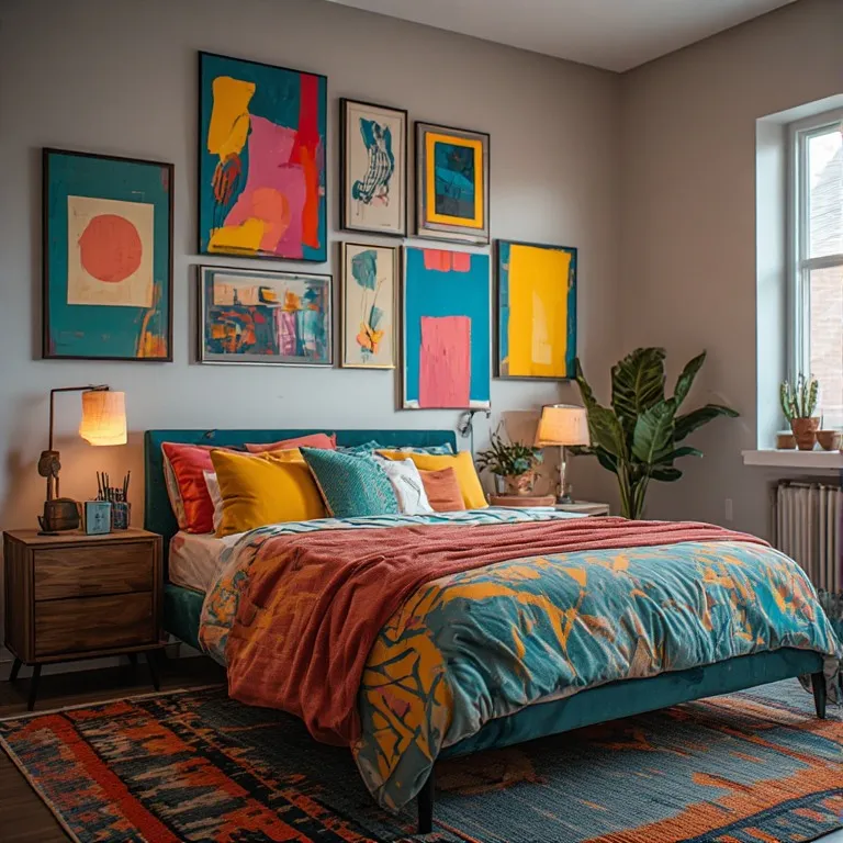 Art-filled bedrooms showcase personality and creativity. Bold wall art, gallery walls, and colorful accents add energy and style. Keep furniture simple to let the artwork shine. This bedroom style allows muses to express themselves fully while still enjoying a cozy, comfortable space. The mix of colors and textures makes it visually dynamic and inspiring.