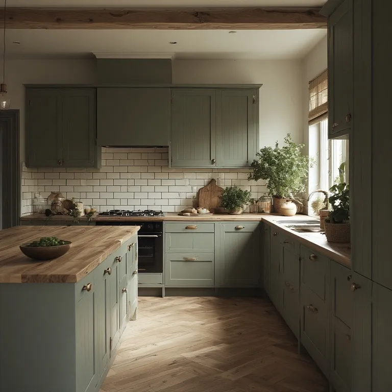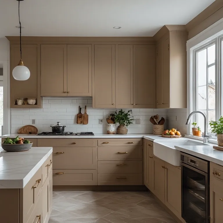 Earthy colors like beige, soft green, and warm gray create a calm kitchen space. These colors connect the kitchen to nature and feel relaxing.