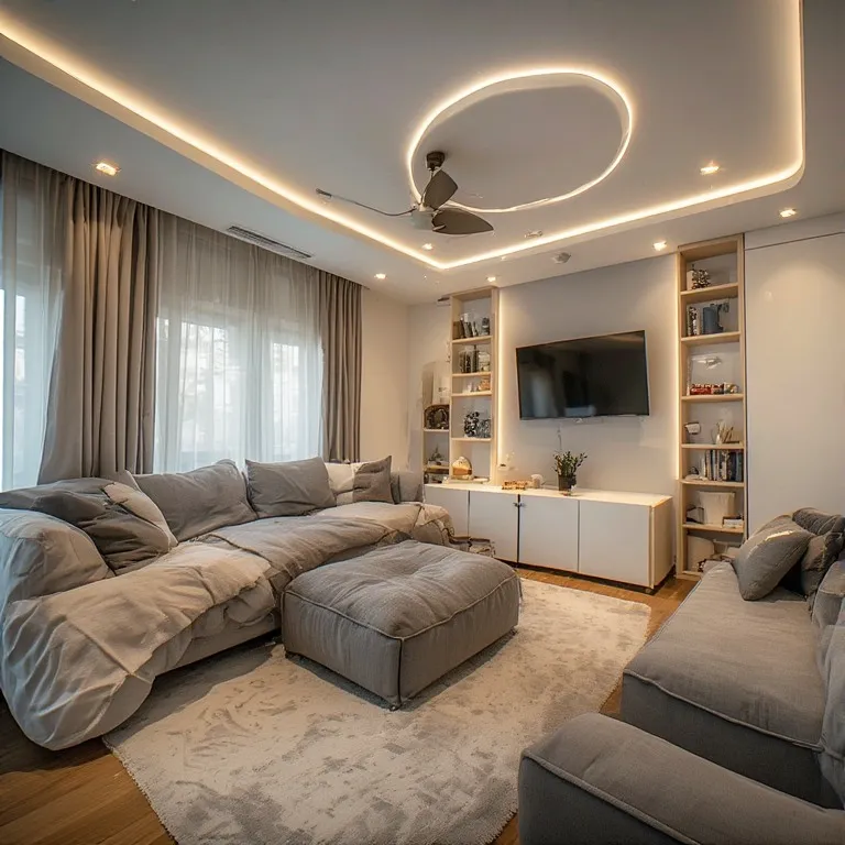 This is the most classic and loved LED setup. Running LED strips along the edges of the ceiling makes the whole room glow softly. It creates a clean and modern look. You can choose one color or let it slowly change colors. This setup works in any room size and instantly makes the space feel stylish. It’s like putting a glowing frame around your room.