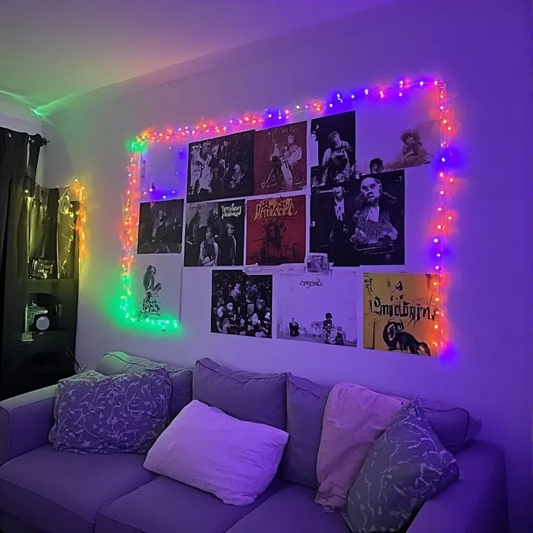 Add LED lights around posters of your favorite bands or albums. You can even sync lights with music. It makes your room feel alive and shows your love for music.