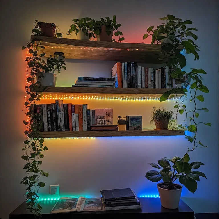 Place LED strips under shelves to highlight books, plants, or décor. Hidden lights add depth and make shelves look stylish without being too bright.