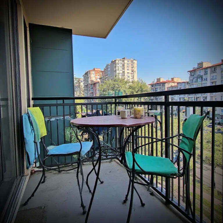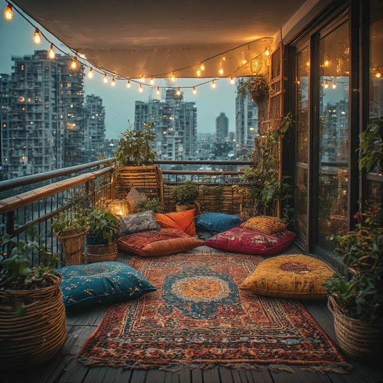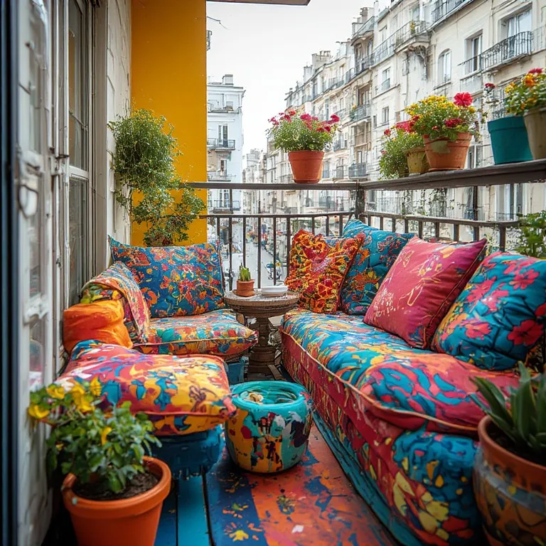 This balcony feels lively and fun. It reflects your personality. A colorful balcony adds joy to city life.
