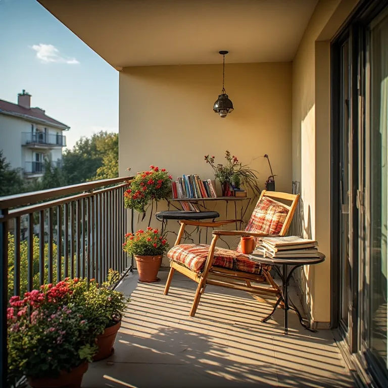 A cozy coffee corner is perfect for small balconies. All you need is a small table and one or two chairs. Choose foldable furniture to save space. Add a soft cushion and a small rug to make it warm and inviting.