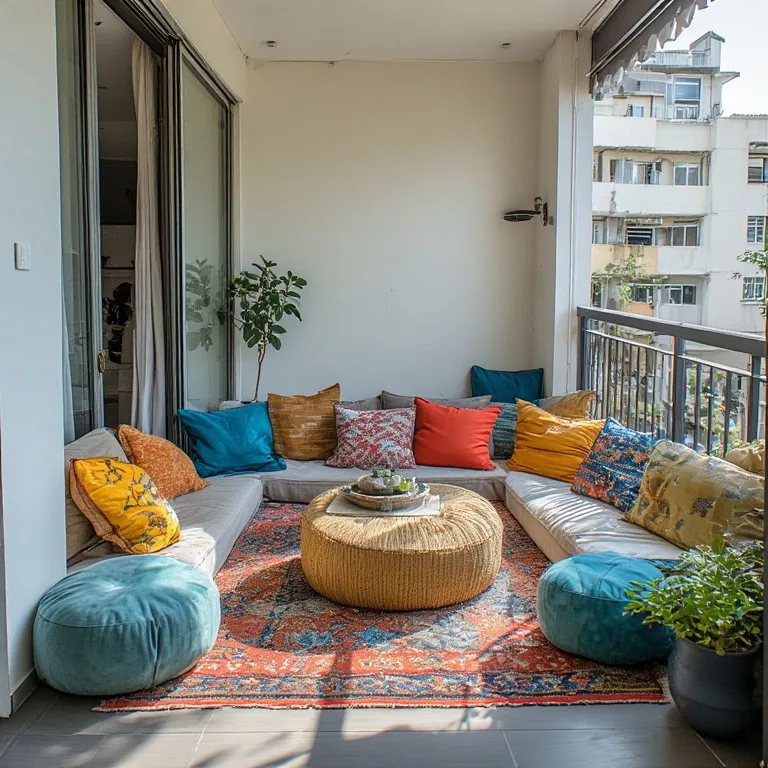 Floor seating is great for small balconies. Use cushions, poufs, or a low table. This creates a relaxed vibe and saves space.