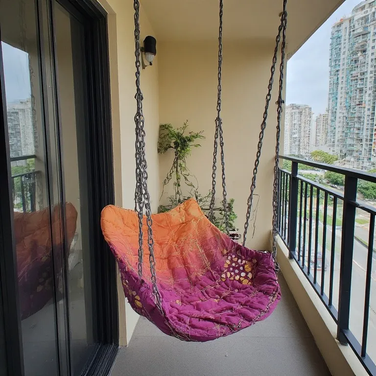 If your building allows it, add a hanging swing or chair. It creates a fun and relaxing vibe.