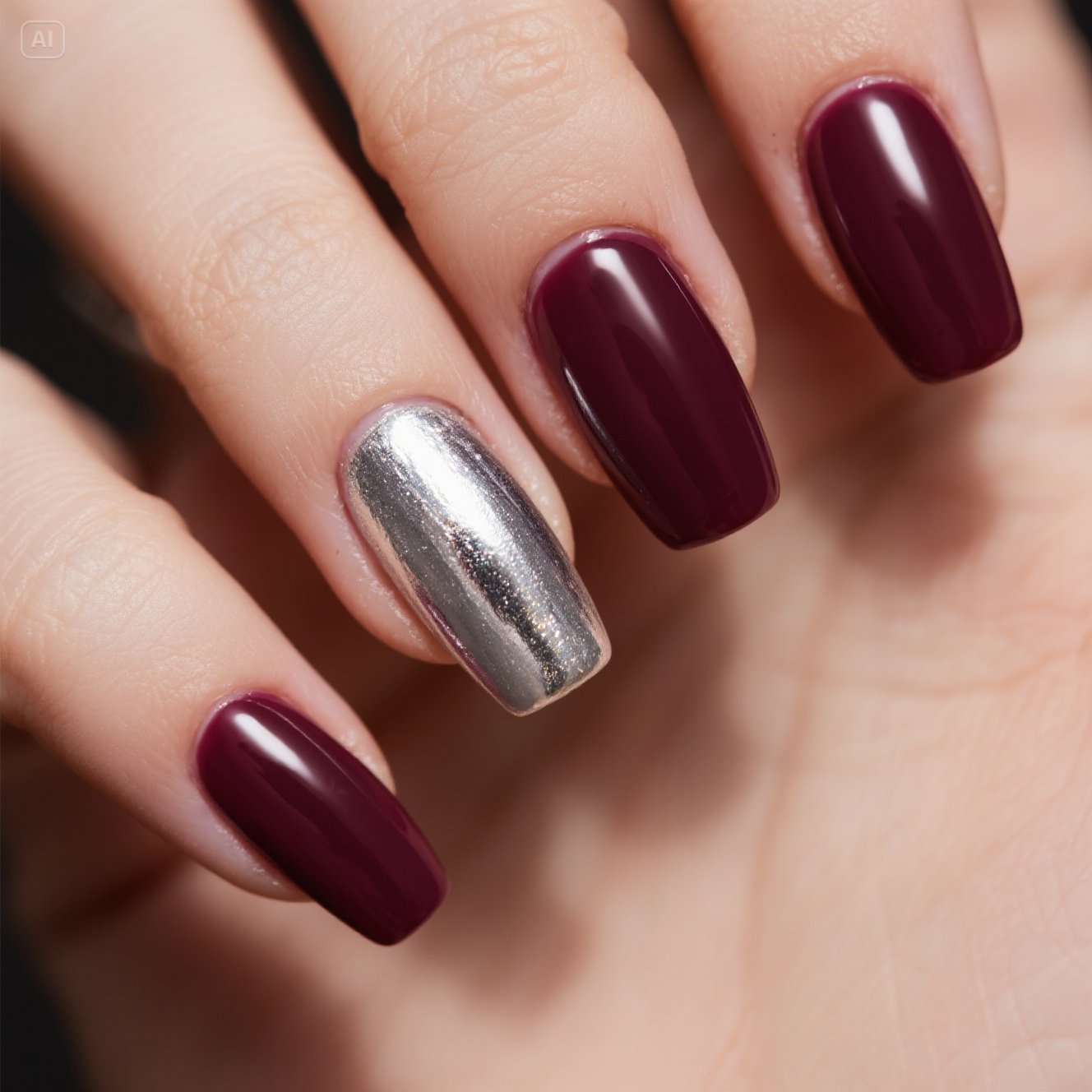 Pair berry wine nails with silver chrome accents. This contrast looks futuristic and edgy.