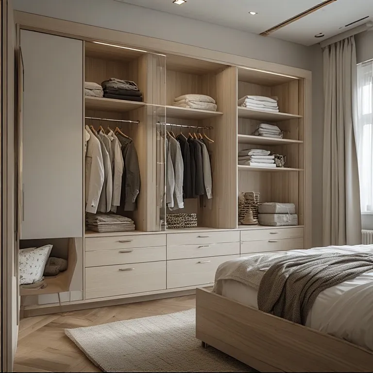 Choose wardrobes with shelves and drawers to reduce extra furniture.