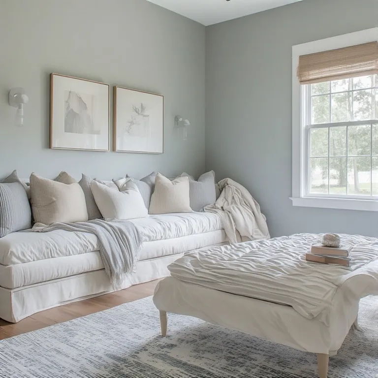 Soft colors like beige, light blue, gray, and pastels calm the mind and body.