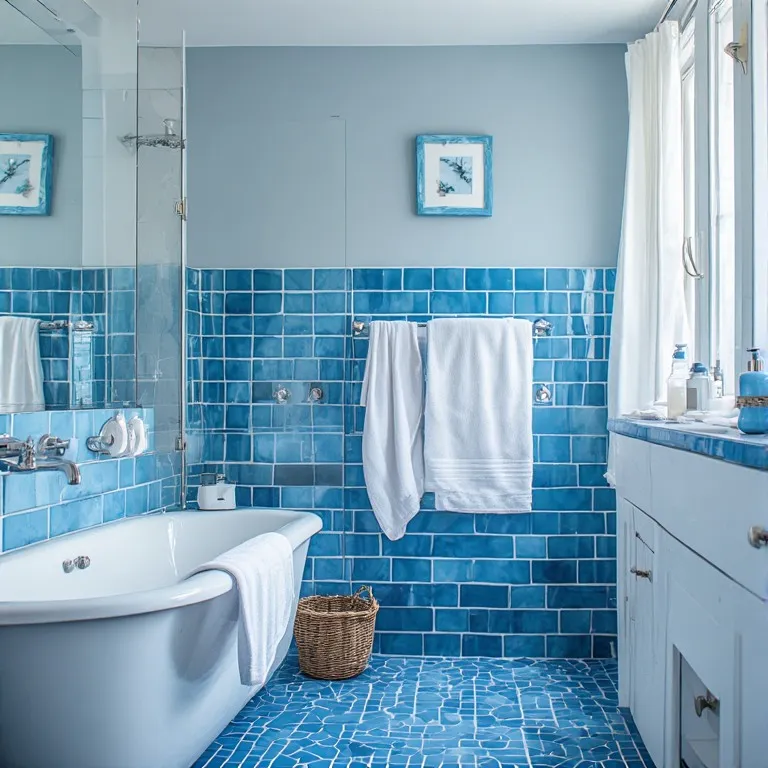Bathrooms feel fresh in blue.