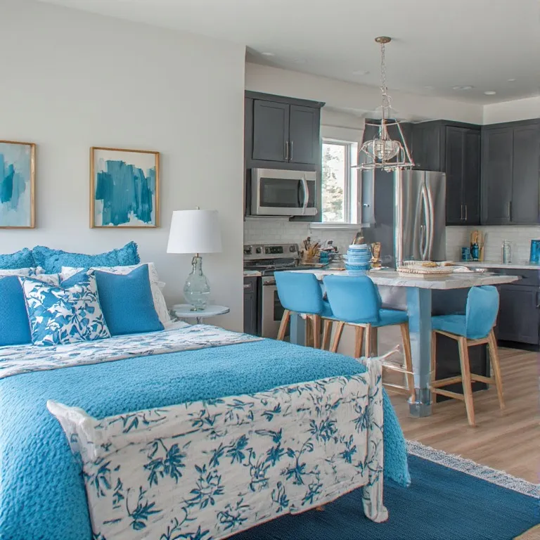 Avoid using too many shades of blue at once. Balance blue with neutral colors to keep the space calm.