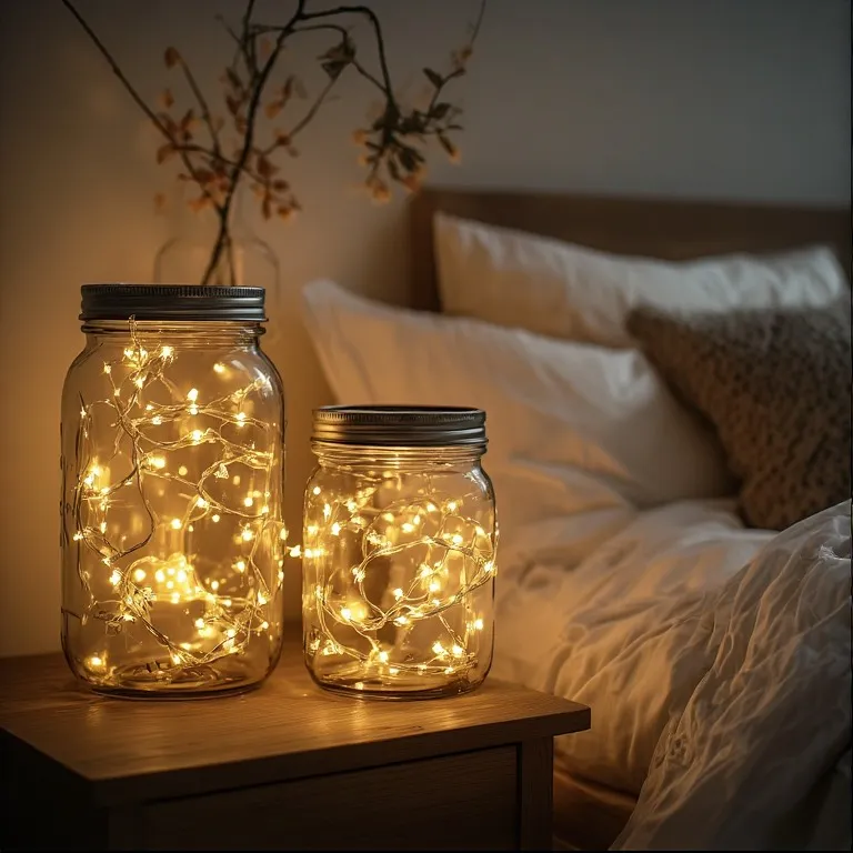 Put fairy lights inside a glass jar. Boom! You have a cute night lamp. This idea is cheap and very easy.