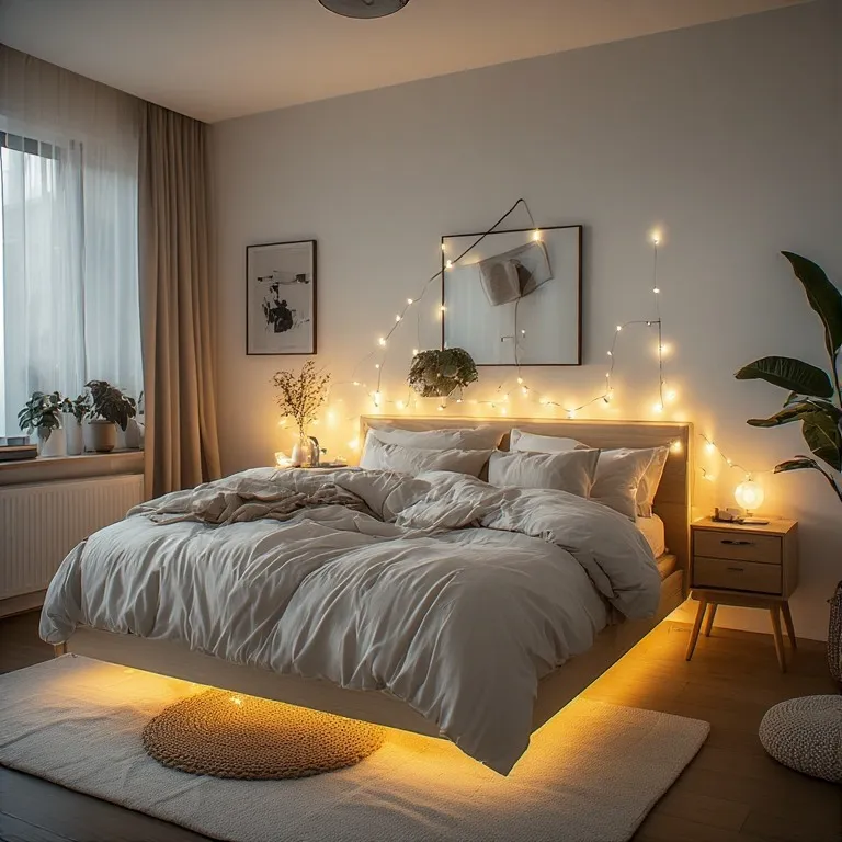 Stick fairy lights under your bed frame. It makes your bed look like it’s floating.