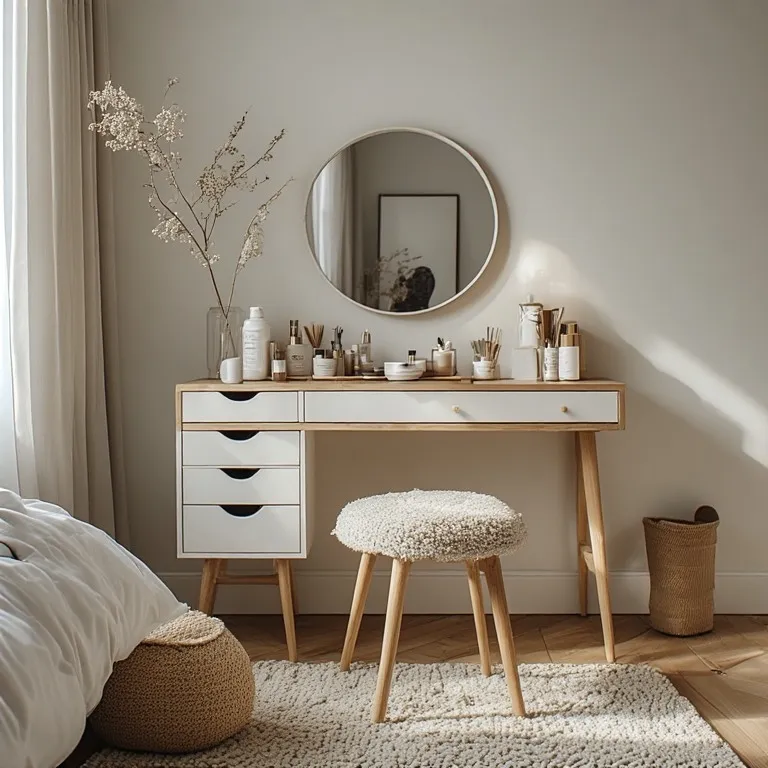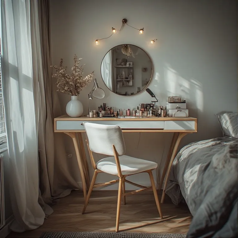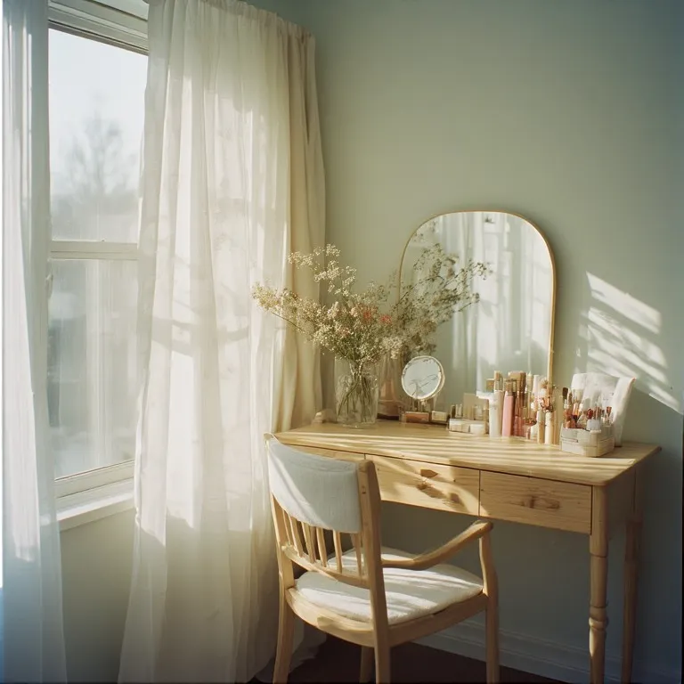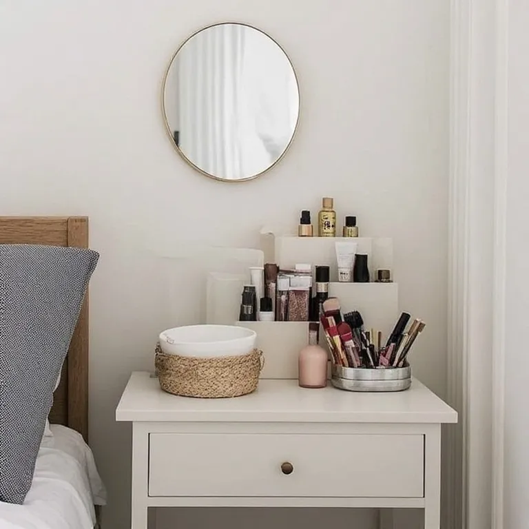 Less is more here. Keep only your daily makeup on the table. Hide the rest in drawers or boxes. A clean surface makes your mind feel clear too. It’s like giving your room a deep breath.