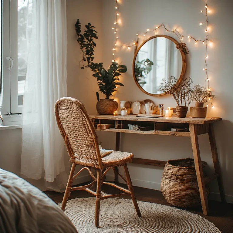 14. Boho-Style Cozy Vanity Corner
