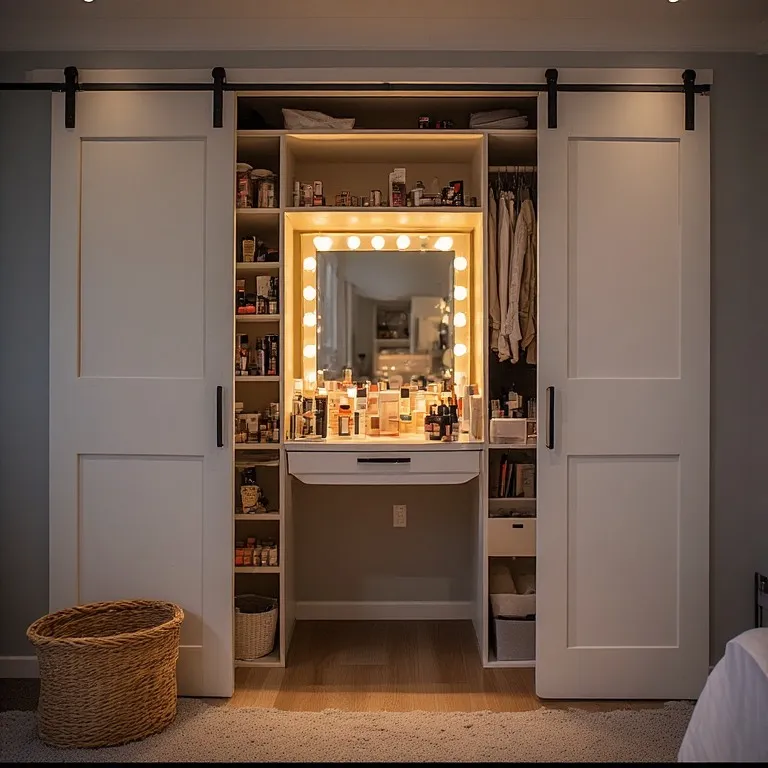 Sliding closet doors save space and make it easy to access your hidden beauty corner.