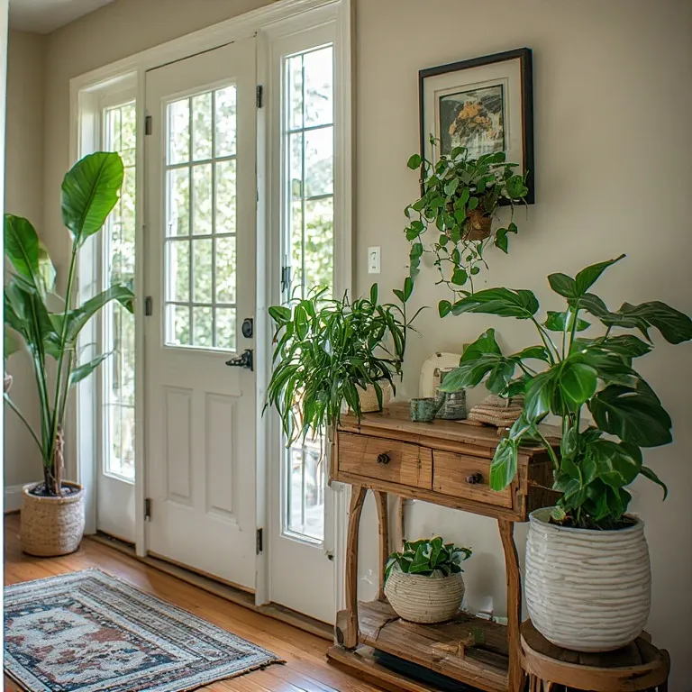 Plants bring life into any space. Even a tiny entryway can feel fresh with a small green plant. Plants make your home feel warm and natural. They also help clean the air.