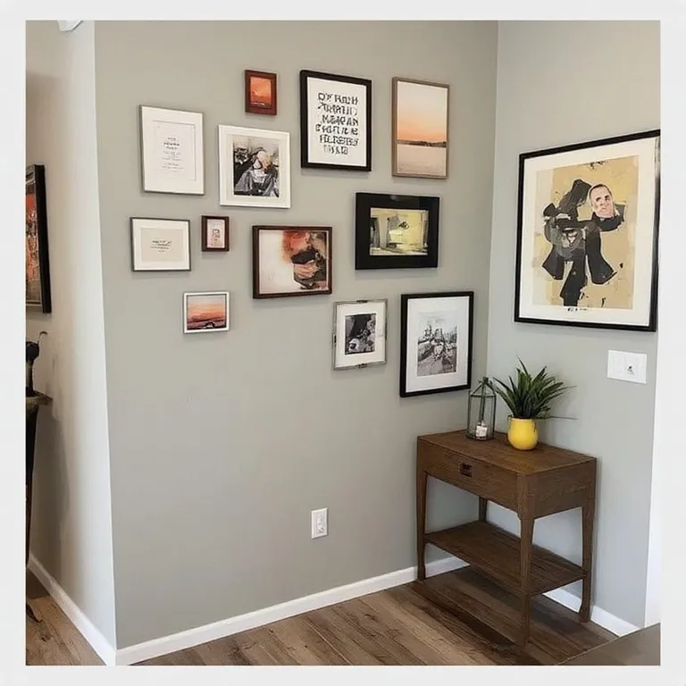 A mini gallery wall works great in small entryways. Choose 3 to 5 frames in similar colors. Keep the spacing even. This makes it look neat instead of messy.