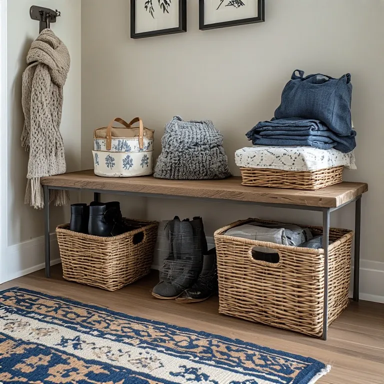 Place one or two baskets under a bench or table. Keep items inside neatly folded.