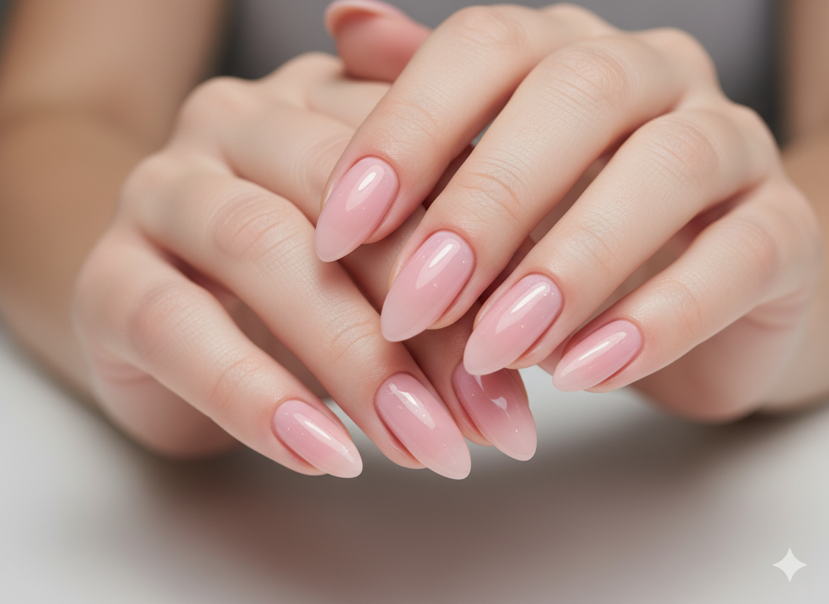 Light milky pink tone with smooth glossy finish. Gives a natural and healthy nail appearance.