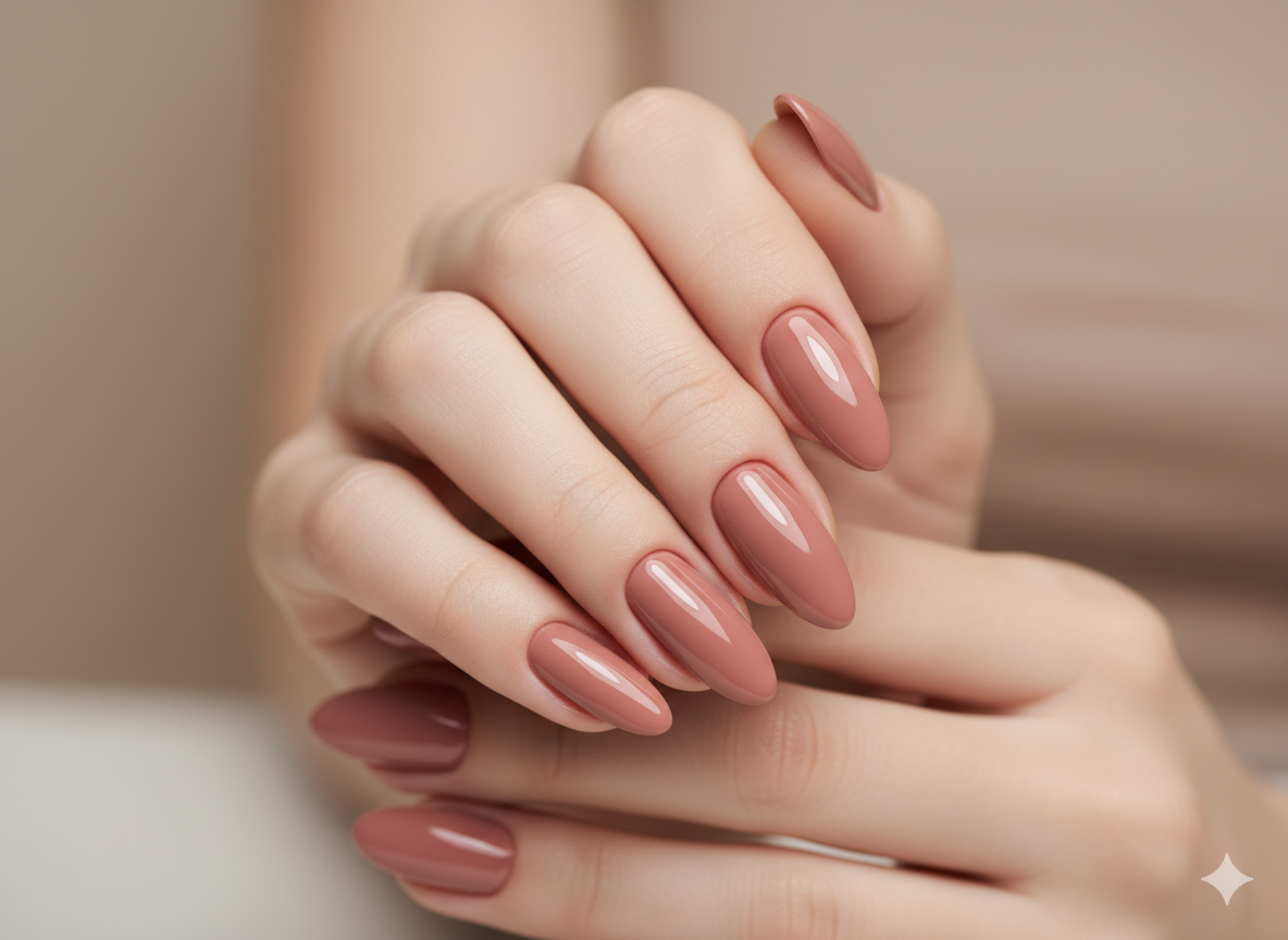 Natural nude pink glossy nails for minimal and classy look.