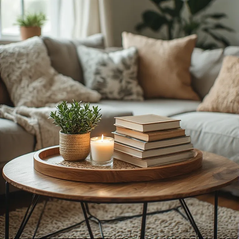 Trays organize surfaces neatly. On coffee tables, they gather candles, books, and small decor into one tidy cluster.