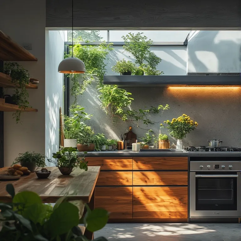 Plants improve air quality and add life. They make the kitchen feel fresh and happy.