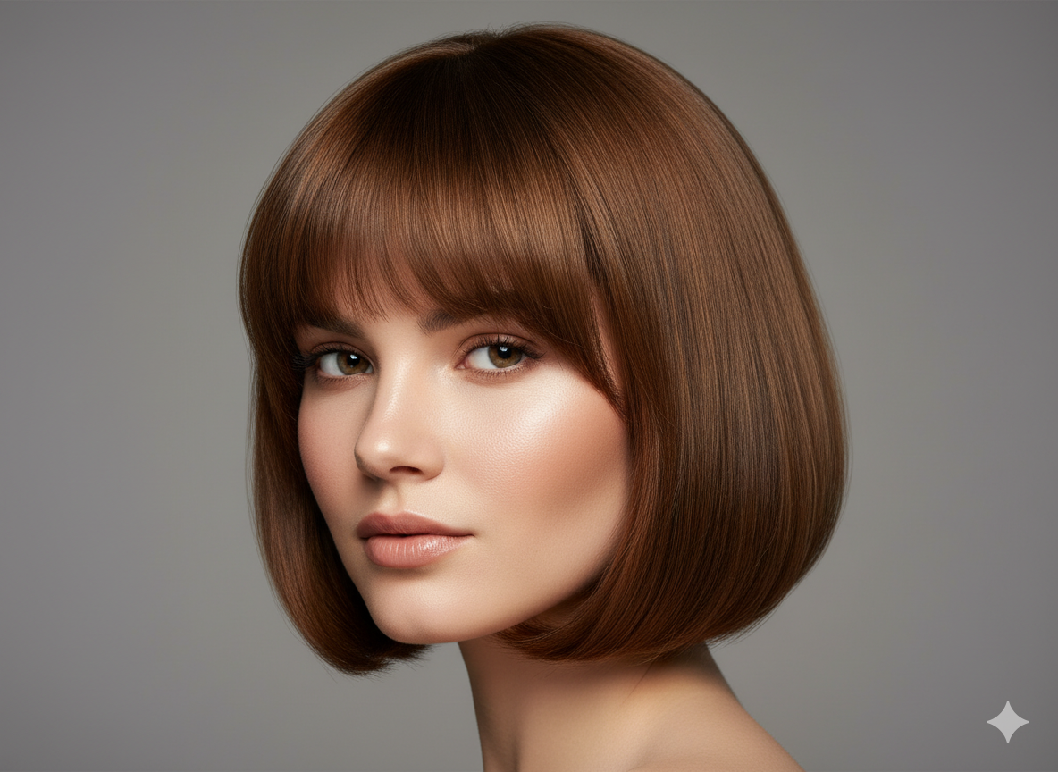 A blunt bob is known for its sharp, even ends. While it can sometimes emphasize roundness, it becomes flattering when combined with a side part or subtle texture. This keeps the look modern and prevents it from appearing too heavy.