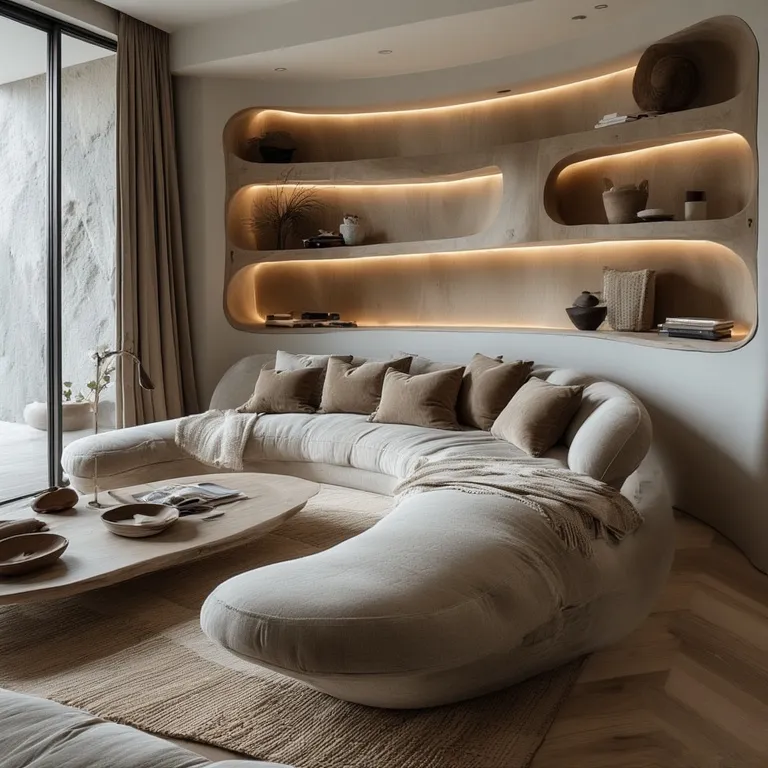 Curves ease tension in a room by changing the visual rhythm. Straight lines can feel sharp; curves whisper calm. A curved floating shelf or rounded coffee table invites touch and looks approachable. These shapes also guide movement around the room, creating a gentle flow between zones. Curves pair beautifully with neutral colors and soft fabrics to create a cozy but modern feel. They show that floating design can be warm as well as sleek.