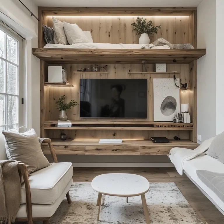 Floating furniture is a dream for small apartments. By keeping floors clear, you get more walking space and the room feels larger. Wall-mounted desks, fold-out floating tables, and slim floating storage help you live big in small rooms. These pieces also let you create zones — a bed area, a work corner, and a seating nook — without heavy furniture that clogs the room. Smart floating choices make a small living room functional, stylish, and comfortable.