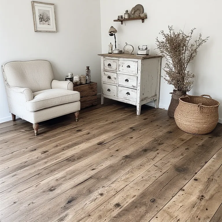 Distressed floors can complement both traditional furniture and modern décor, creating unique contrast.