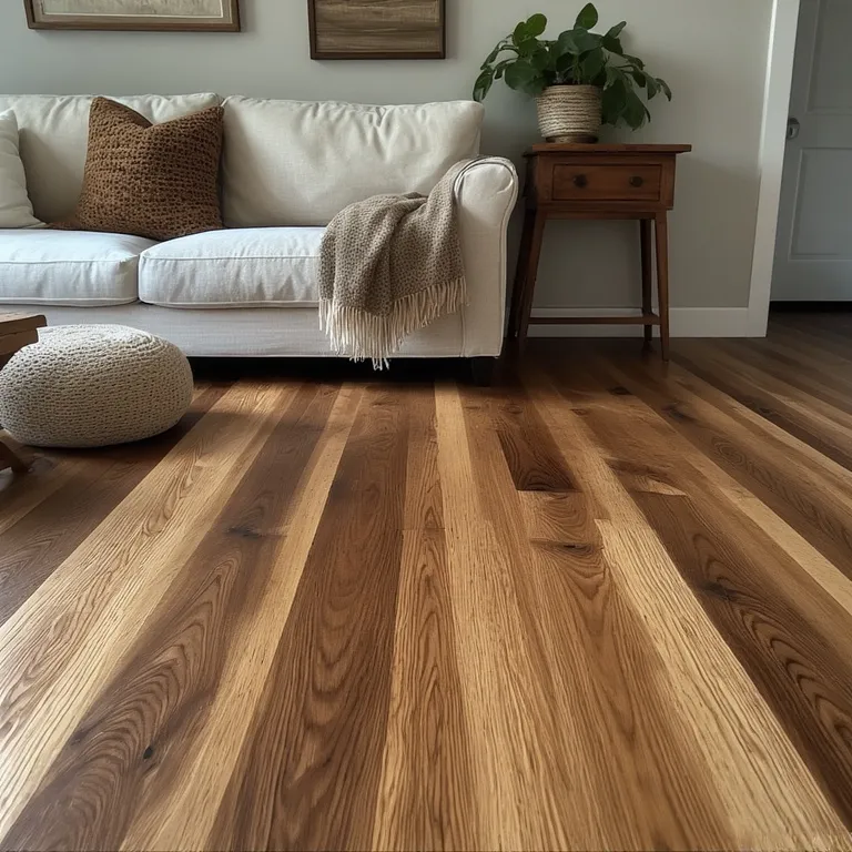 Multi-tone hardwood floors combine different shades and grains, offering unique character to living rooms. This finish adds depth, interest, and a one-of-a-kind look. Multi-tone floors can match eclectic furniture, bold accent colors, or varied textures. In 2025, homeowners are embracing this trend for living rooms that stand out.