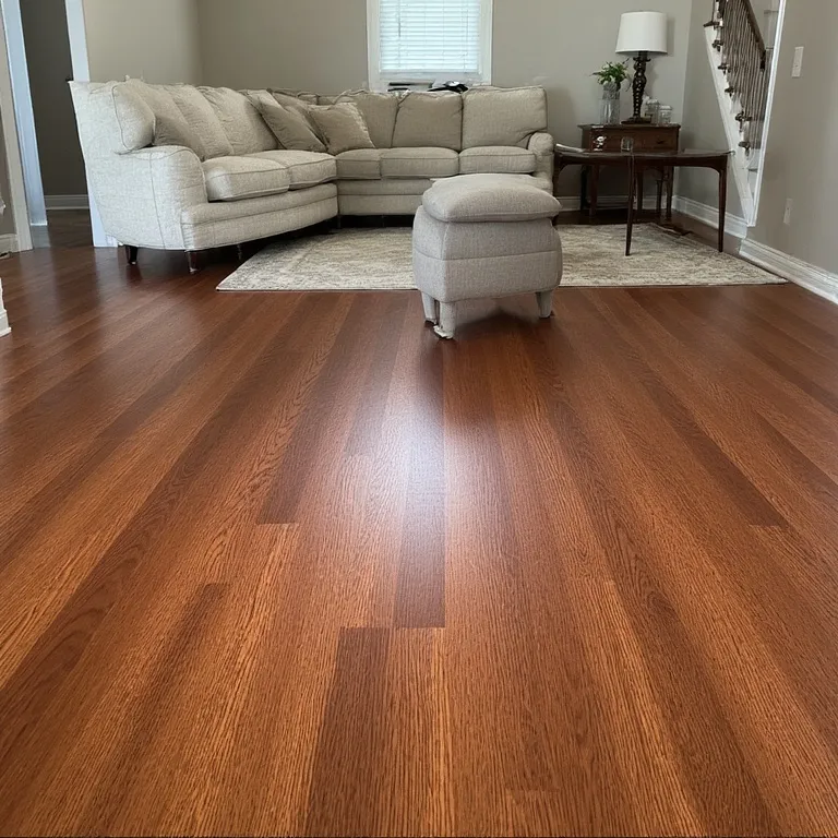High-gloss hardwood floors are reflective and elegant, making living rooms feel luxurious and spacious. The shiny surface amplifies natural and artificial light, giving the space a bright, polished look. High-gloss floors work beautifully with modern furniture and high-end décor. They are a statement choice for living rooms that aim to impress.
