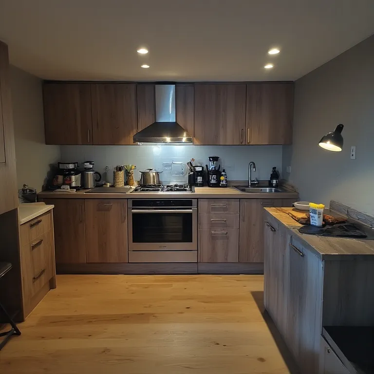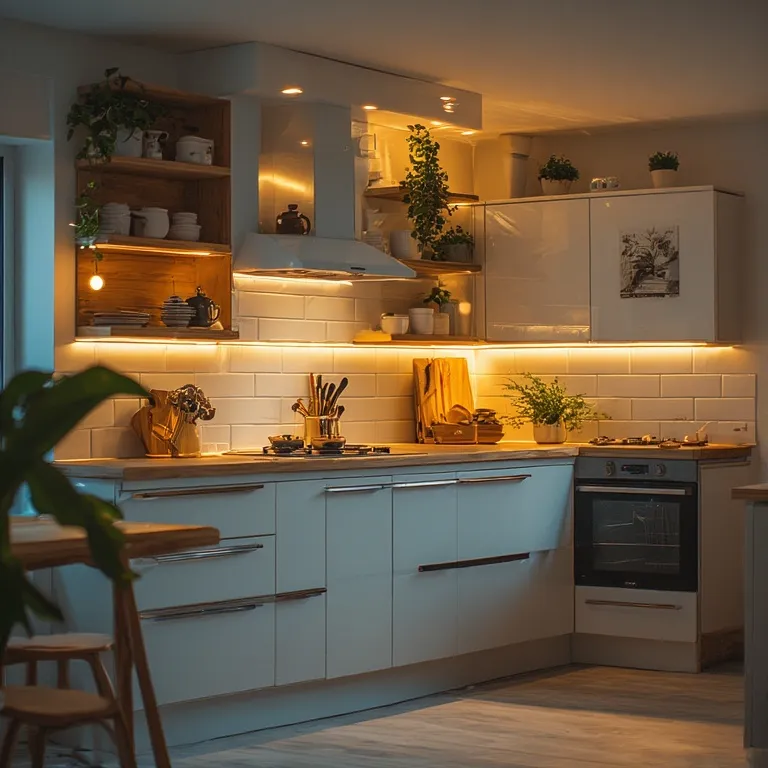 Lighting changes everything. Use under-cabinet lights, ceiling spotlights, and warm ambient lighting. Good lighting makes the kitchen feel welcoming and highlights the clean design.