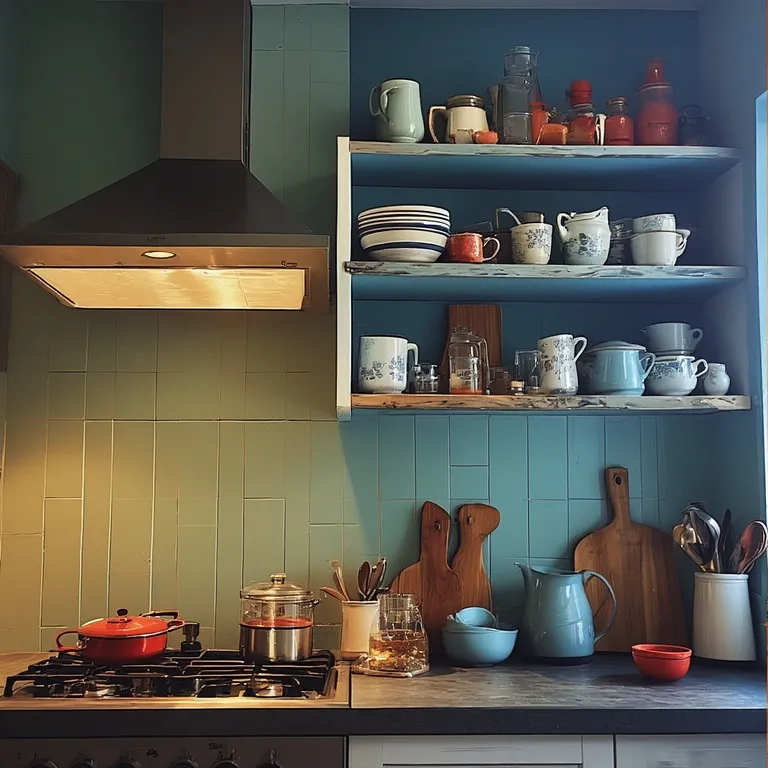 Open shelves can work if kept minimal. Display only a few matching items like cups or bowls. This adds style without making the space messy.