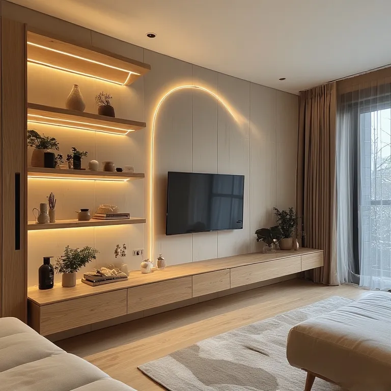 LED strip lighting is simple yet powerful. When used with warm tones, it adds a soft glow to shelves, TV units, and ceilings. It highlights shapes and lines beautifully. LED strips are hidden but effective. They create depth and layers in the room. This trend is like outlining a drawing—it makes everything clearer and more attractive.