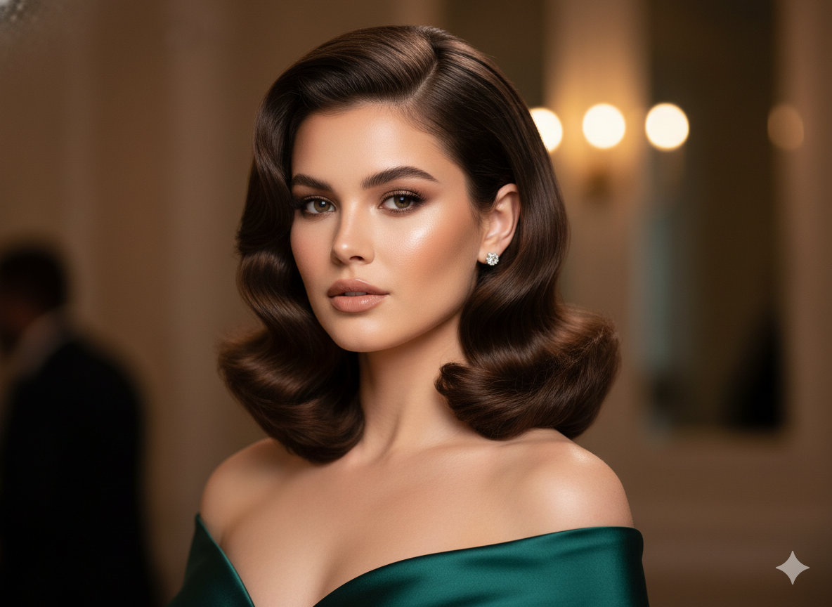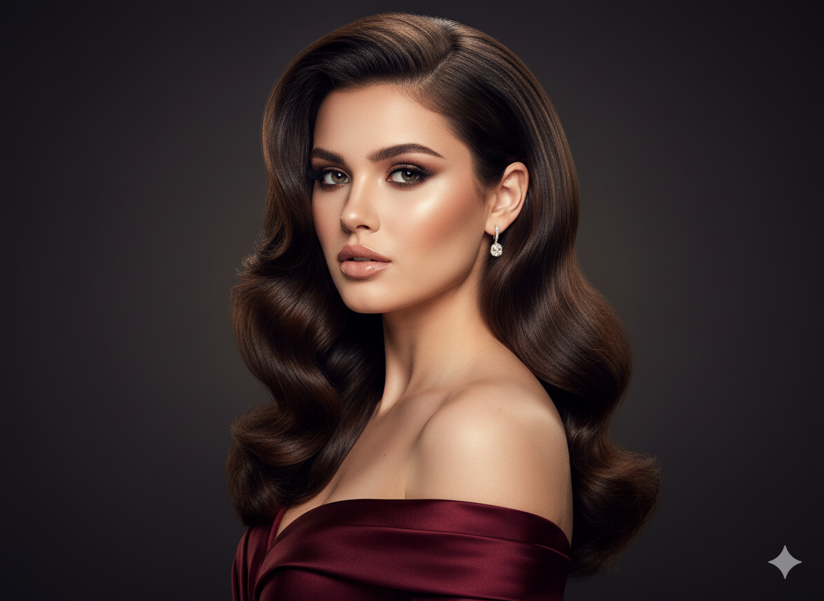 This glamorous style is inspired by old Hollywood waves. It features deep volume at the roots and smooth, structured waves flowing through the length.