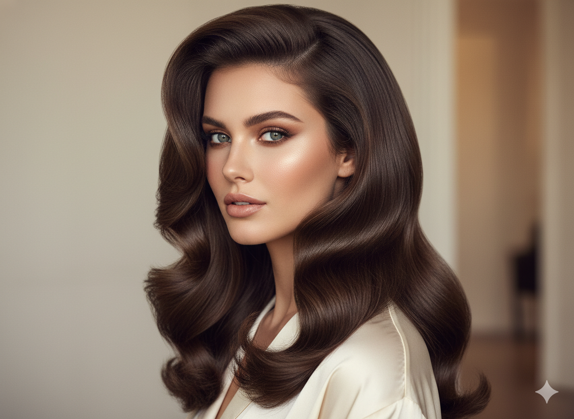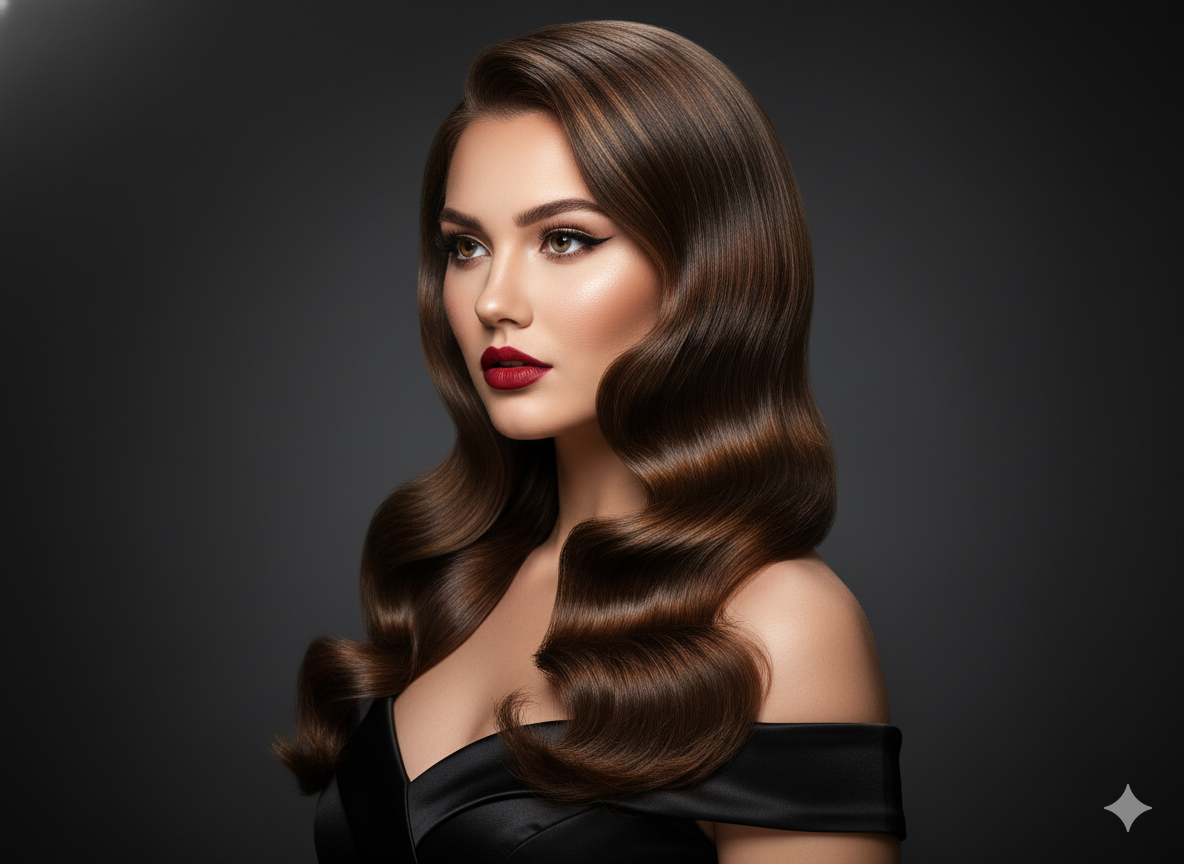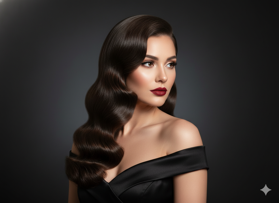 Inspired by red-carpet beauty, this style uses soft glamorous waves with a smooth blowout finish.