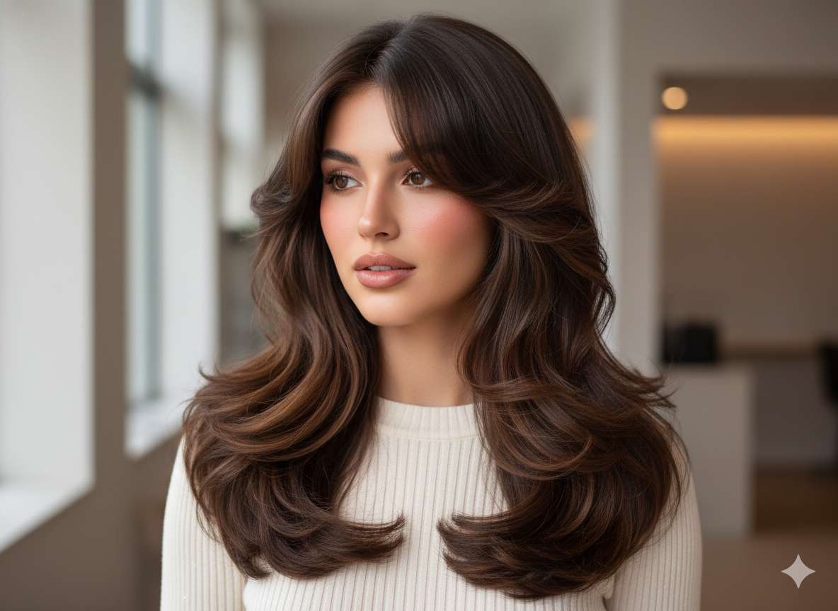 It gives major luxury editorial vibes and works beautifully on mid-length layered cuts.