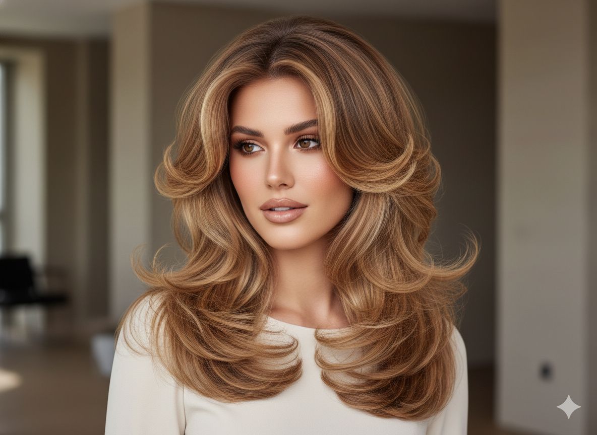 One of the top salon trends of 2026 is the voluminous layered blowout.