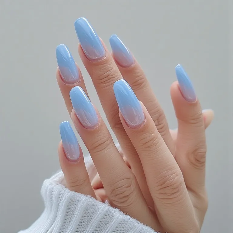 A simple baby blue polish on coffin nails creates a clean and refreshing look.