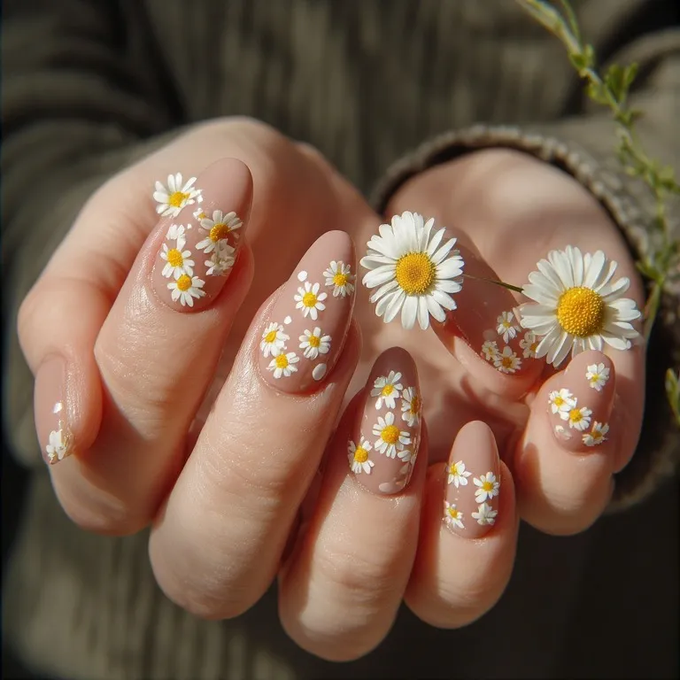 Adding a tiny daisy on one nail creates a cute and seasonal design.