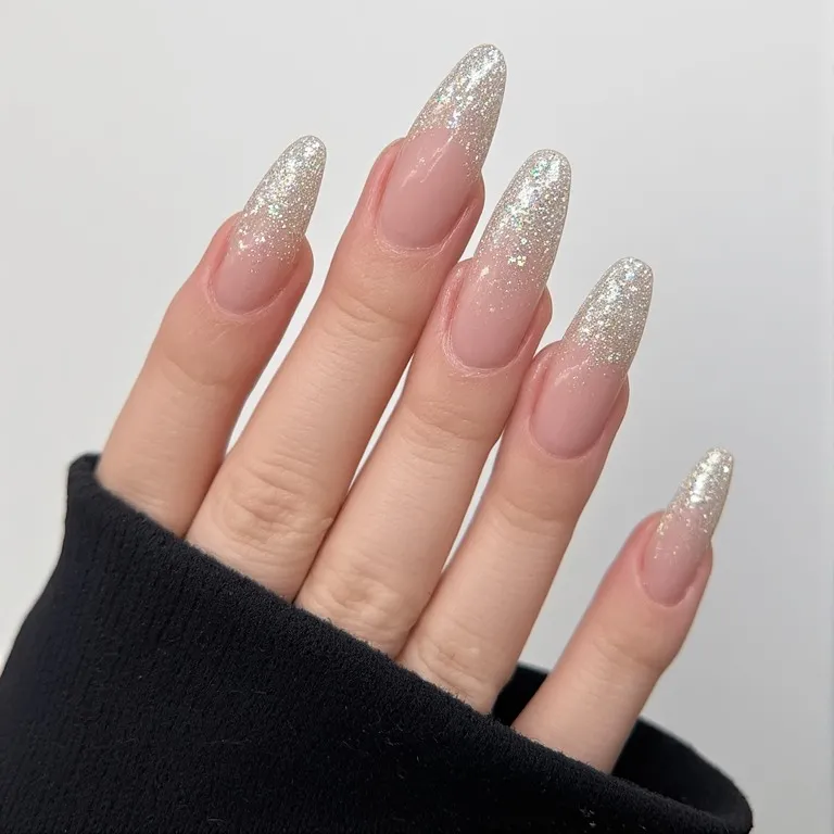 Instead of covering the whole nail, only the tips have light glitter. This keeps the design minimal but fun.