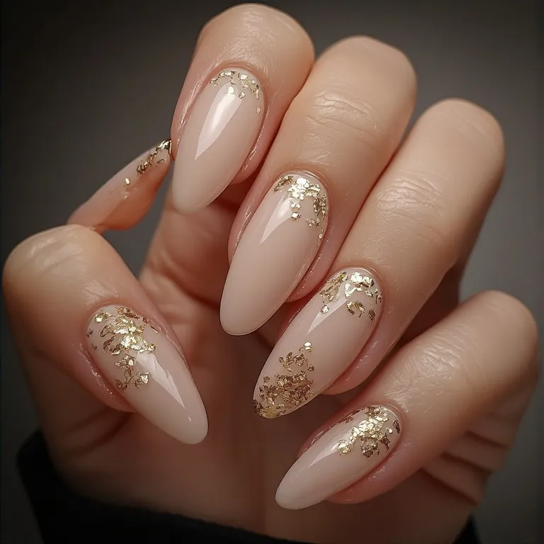 A tiny gold line, dot, or foil detail on nude nails creates a beautiful contrast.