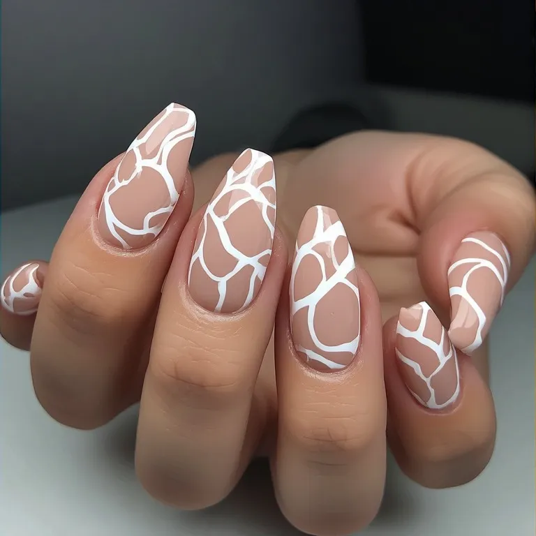 Thin white lines can create simple shapes like curves, waves, or tiny patterns. When placed on nude or pastel nails, the design looks modern and stylish.