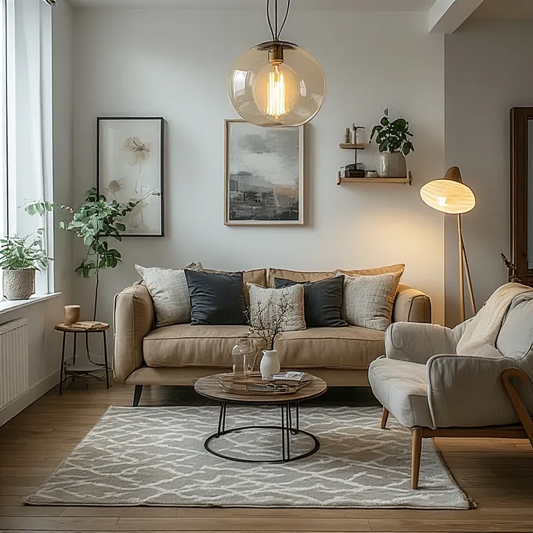 Pendant lights, floor lamps with clean lines, and modern chandeliers are popular choices. They act as both light sources and decor pieces at the same time.